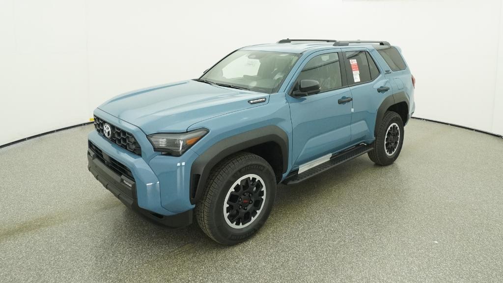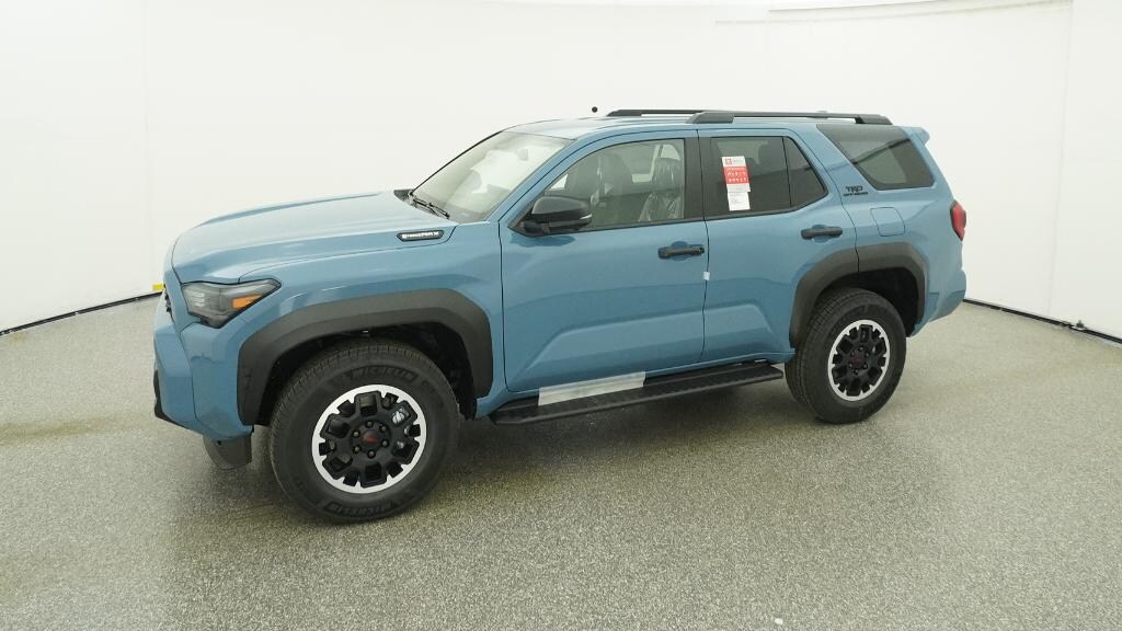 • Black honeycomb-style grille, mirror caps, door handles and overfenders; color-keyed rear spoiler; black "trd off road" and "4runner" badges.
