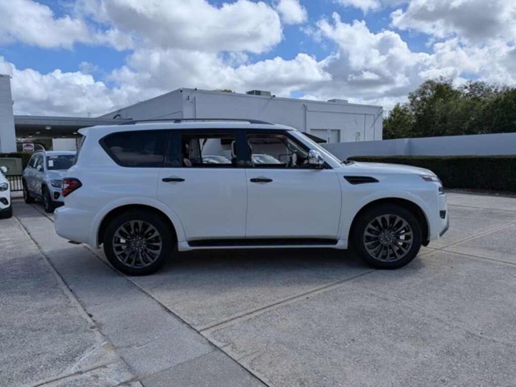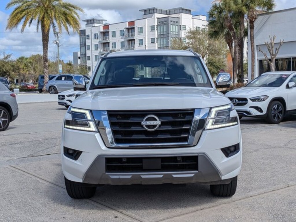 Thank you for your interest in one of Mercedes-Benz of Orlando's online offerings. Please continue for more information regarding this 2023 Nissan Armada Platinum with 31,832mi. This Nissan includes: ASPEN WHITE TRICOAT [L93] 3RD ROW CARPETED FLOOR MATS Floor Mats [X01] CAPTAIN'S CHAIRS PACKAGE 3rd Row Seat Split Bench Seat Rear Bench Seat Fixed Bench Seat Rear Bucket Seats Bucket Seats [G01] MID-YEAR CHANGE [M92] CARGO PACKAGE *Note - For third party subscriptions or services, please contact the dealer for more information.* Treat yourself to an SUV that surrounds you with all the comfort and conveniences of a luxury sedan. Excellence, luxury and stature are just a few of the pillars this car is built upon. It's not a misprint. And the odometer isn't broken. This is a very low mileage Nissan Armada. A rare find these days. Want a mobile theater? This Nissan Armada Platinum has a premium entertainment package that will keep your passengers entertained with superb enjoyment. Marked by excellent quality and features with unmistakable refined leather interior that added value and class to the Nissan Armada Platinum.